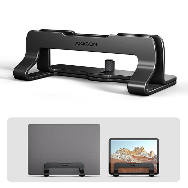 AXAGON STND-VB vertikální hliníkový stojan na notebook 10"-17.3" nastavitelný rozestup, černý