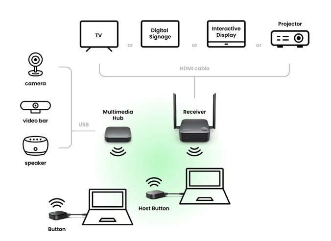 BenQ VS25 InstaShow, USB-C,HDMI (s USB-A), 4K, 64 uživatelů, 2 tlačítka Plug and Play, Bezdrátový prezentační systém