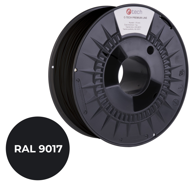 C-TECH tisková struna PREMIUM LINE ( filament ) , PETG, dopravní černá, RAL9017, 1,75mm, 1kg