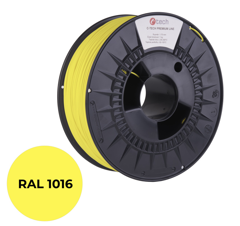 C-TECH tisková struna PREMIUM LINE ( filament ) , PETG,sírová žlutá, RAL1016, 1,75mm, 1kg