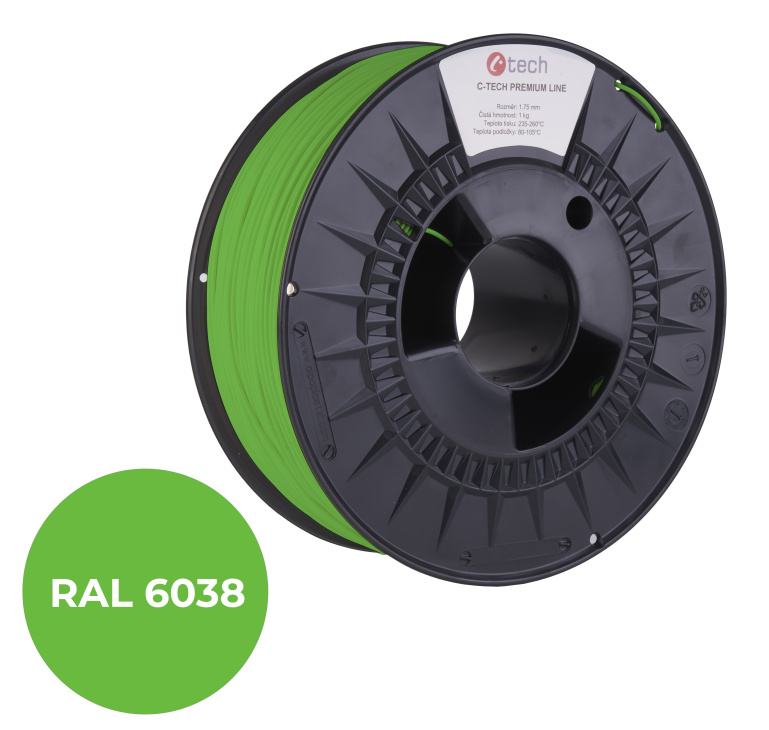 C-TECH tisková struna PREMIUM LINE ( filament ) , PLA, luminiscenční zelená, RAL6038, 1,75mm, 1kg