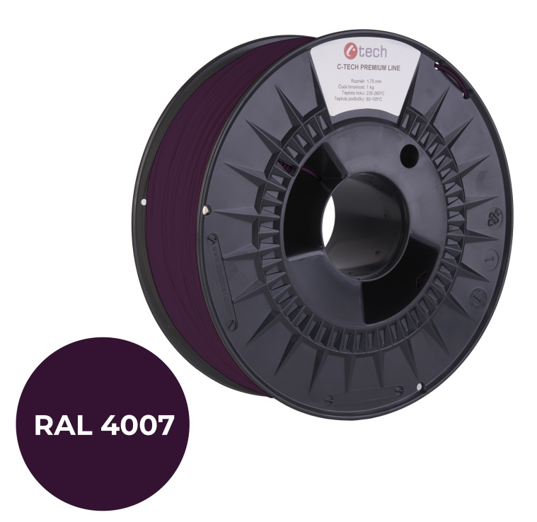C-TECH tisková struna PREMIUM LINE ( filament ) , PLA, purpurová fialková, RAL4007, 1,75mm, 1kg