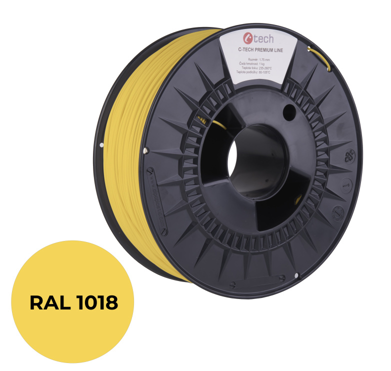 C-TECH tisková struna PREMIUM LINE ( filament ) , PLA, zinková žlutá, RAL1018, 1,75mm, 1kg