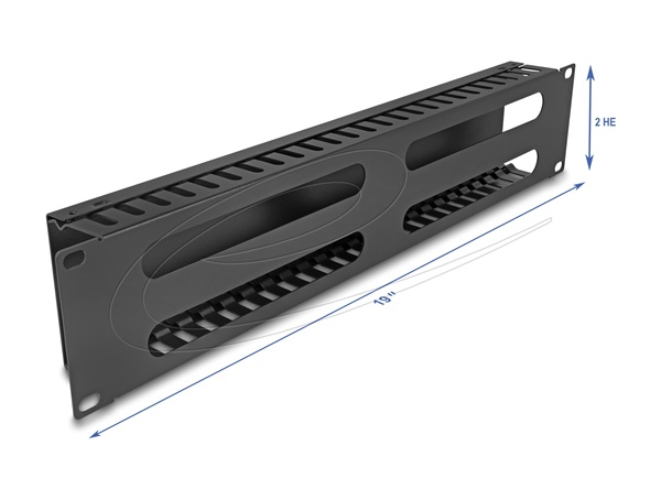 Delock 19” Management panel pro správu kabelů, se 4 otvory, 2U, kov, černý