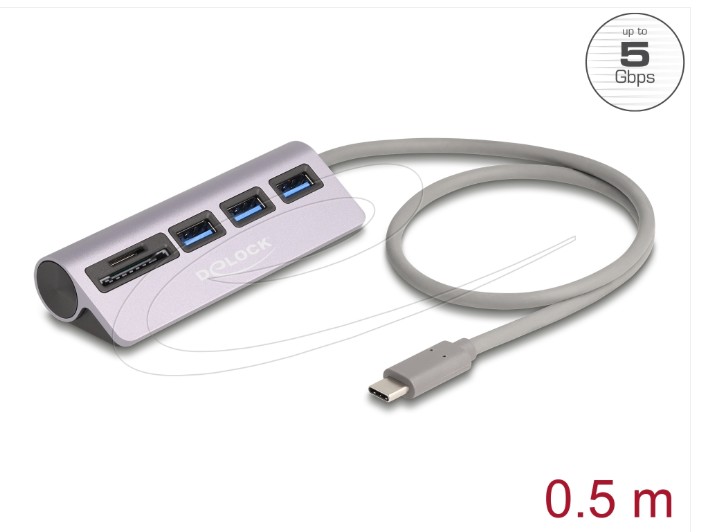 Delock 3 portový rozbočovač USB 5 Gbps včetně čtečky karet SD a Micro SD s konektorem rozhraní USB Type-C™