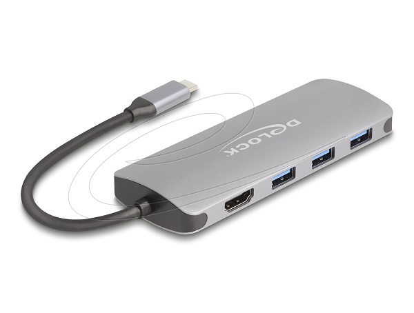 Delock 7portový USB 10 Gb/s rozbočovač a výstup 4K HDMI s připojením USB typu C a PD 3.0 90 Wattů