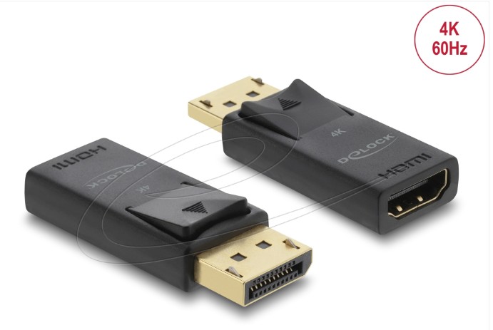 Tento adaptér Delock umožňuje připojení monitoru HDMI projektoru nebo TV k zařízení s volným rozhraním DisplayPort. Díky malým rozměrům je adapter ideální na cesty. Adaptér podporuje rozlišení až do 4K Ultra HD při 60 Hz a je zpětně kompatibilní s Full-HD 1080p.