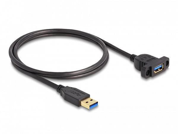 Delock Kabel SuperSpeed USB 5 Gbps (USB 3.2 Gen 1) ze zástrčky USB Typu-A na zásuvku, 1 m, panelová montáž, černý