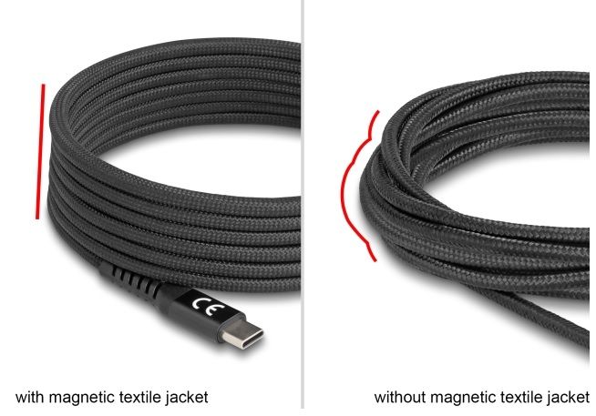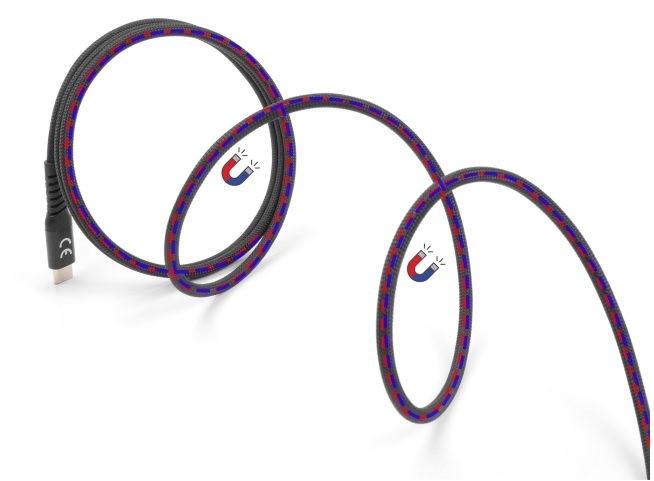 Díky integrovaným magnetům v opláštění kabelu se kabel nezašmodrchává. Kabel se automaticky vrací do své svinuté polohy a vždy působí spořádaným dojmem.