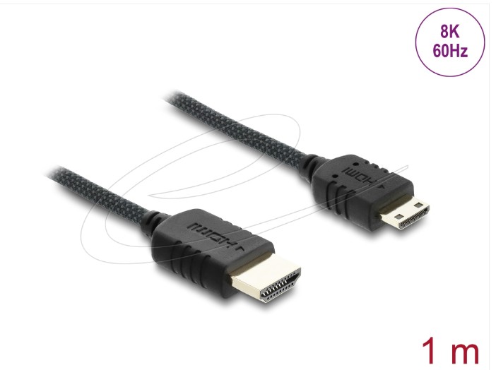 Delock Koaxiální kabel High Speed HDMI HDMI samec na Mini HDMI samec 8K 60 Hz s pleteným opláštěním 1 m