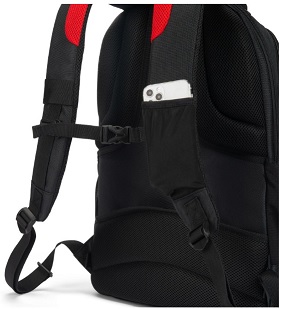 Polstrovaný ramenní popruh s hrudním pásem a elastickou kapsou na smartphone