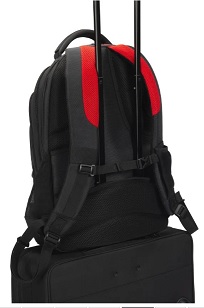 Skrytá kapsa na zadní straně slouží jako bezpečnostní kapsa a popruh na kolečkách