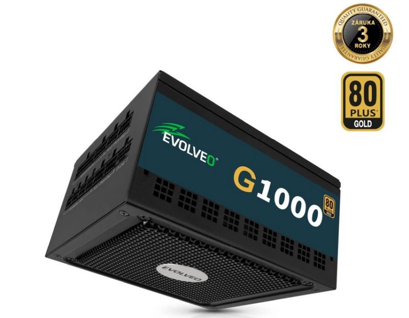 EVOLVEO G1000 zdroj 1000W, 80+ GOLD, ATX 3.1, aPFC, 140 mm ventilátor, záruka 3 roky, černý