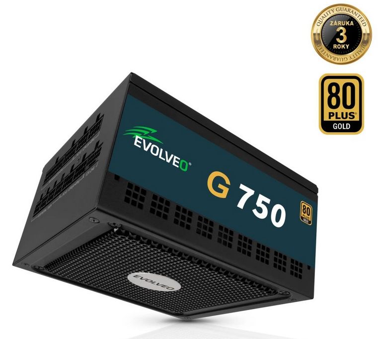 EVOLVEO G750 zdroj 750W, 80+ GOLD, ATX 3.1, PCIe 5.1, aPFC, 140mm ventilátor, modulární, záruka 3 roky, černý