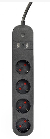 GEMBIRD chytrá prodlužovačka s USB nabíječkou, 4 zásuvky, černá
