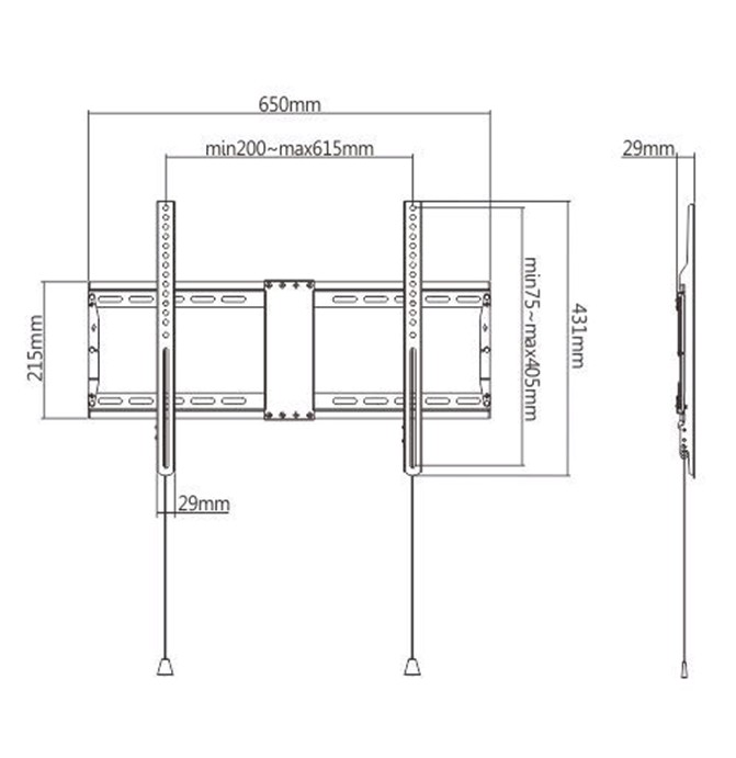 Vesa compatible: 200x200, 300x200, 400x200, 300x300, 400x300, 400x400, 600x400 mm