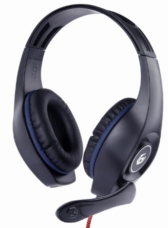 GEMBIRD herní headset s ovládáním hlasitosti, modro-černý, 3,5mm konektor