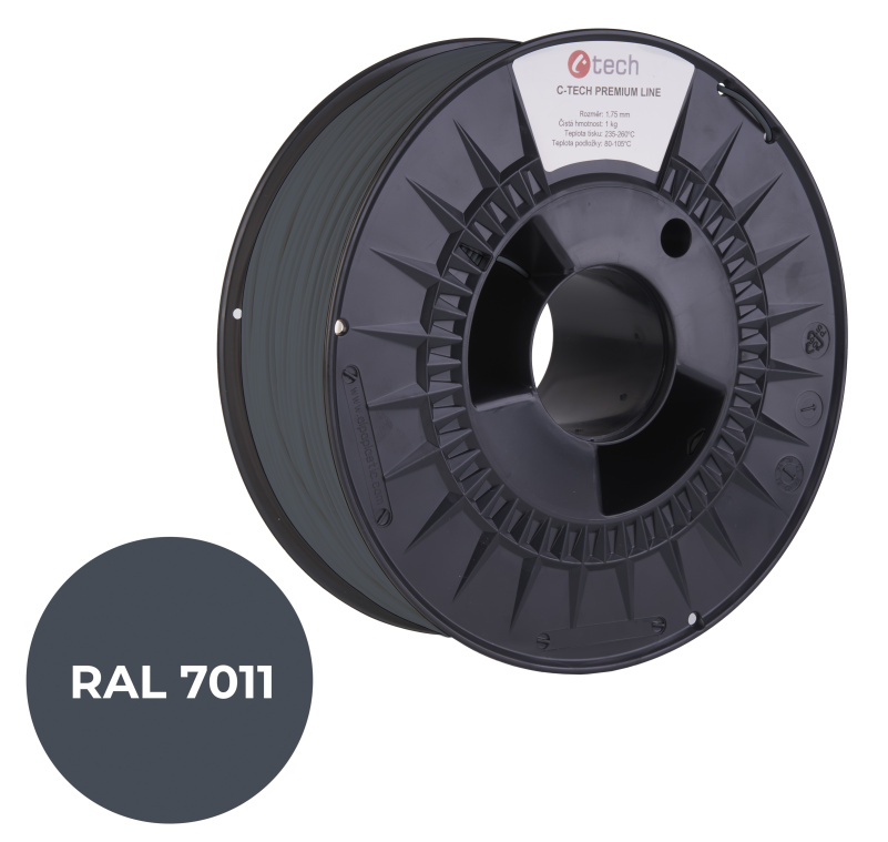 C-TECH tisková struna PREMIUM LINE ( filament ) , PETG, ocelová šedá, RAL7011, 1,75mm, 1kg