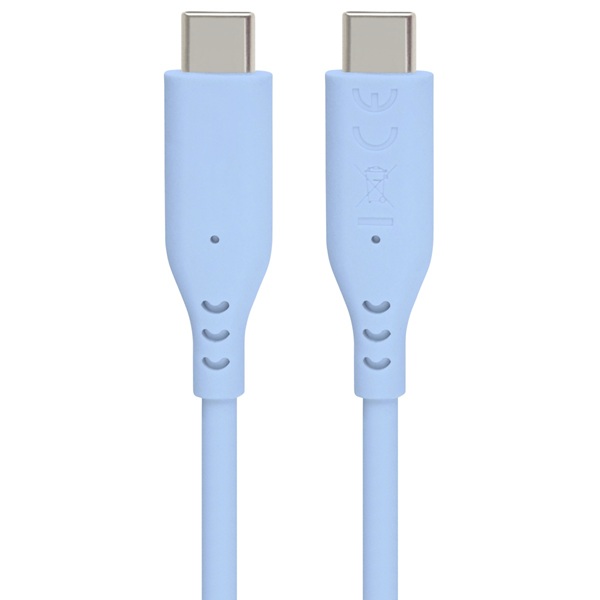 PremiumCord Silikonový kabel s konektory USB-C 60W 480Mbps modrý extra měkký 1,5m