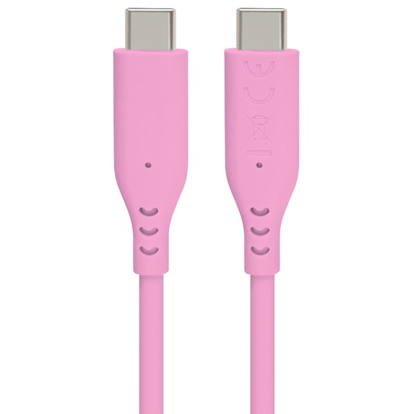 PremiumCord Silikonový kabel s konektory USB-C 60W 480Mbps růžový extra měkký a robustní kabel délky 1,5m