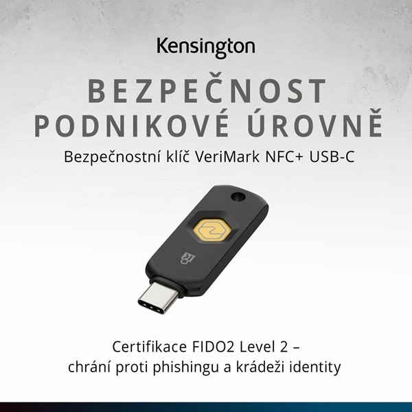 Kensington VeriMark™ NFC+ USB-C® Security Key – Bezpečnostní klíč pro vícefaktorové a bezheslové přihlašování