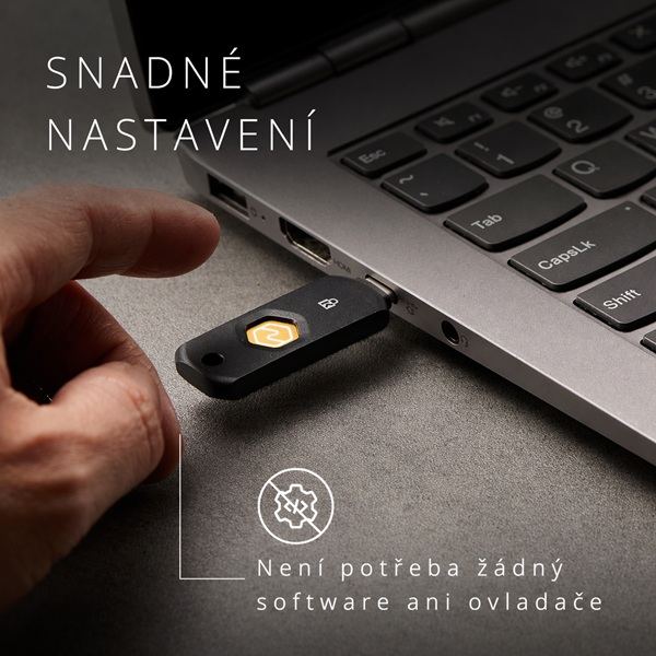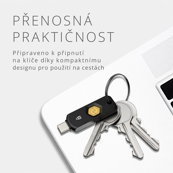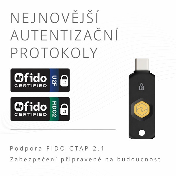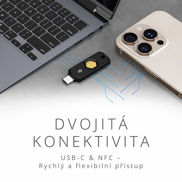 Tento bezpečnostní klíč slouží k ochraně přihlašování do online účtů a firemních systémů. Využívá vícefaktorové ověření (MFA) nebo bezheslové přihlášení, takže výrazně snižuje riziko phishingu a zneužití účtů. Přihlášení probíhá jednoduše – stačí klíč zapojit do USB-C nebo přiložit k zařízení a potvrdit přístup. Používá se například pro přihlášení do Google účtu, Microsoft 365, GitHubu nebo dalších cloudových a firemních aplikací. Díky tomu je vhodný pro každodenní práci i profesionální IT prostředí.