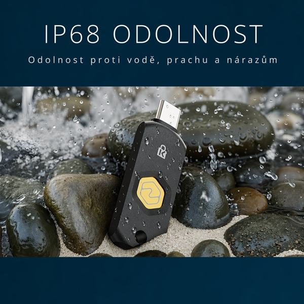 Robustní konstrukce (IP68) zajišťuje spolehlivé fungování i při každodenním používání.