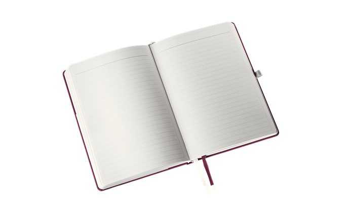 Prémiový zápisník s tvrdými deskami. Formát A5, linkovaný. Uzavírání na gumičku, úchyt na propisku a vnitřní kapsy na volné papíry.