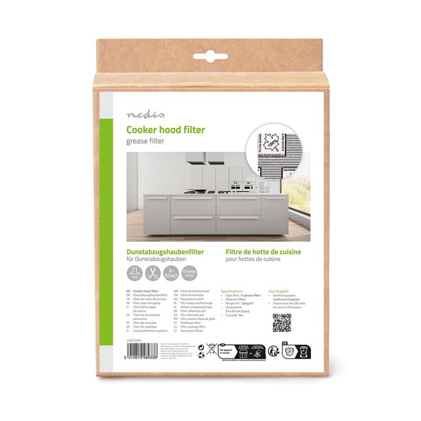 Tento univerzální tukový filtr do odsavače par pohlcuje tuk a vlhkost při smažení, vaření a fritování a zabraňuje tak nepříjemnému zápachu v kuchyni. Filtr je samozhášivý nejpozději po 10 sekundách podle normy V1.