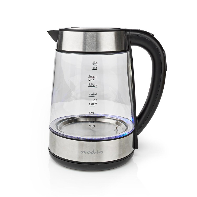 Nedis KAWK320EGS - Rychlovarná konvice | 1.7 l | Sklo | Transparentní | 60,70,80,90,100 °C | Ukazatel teploty | Otočný o 360 stupň
