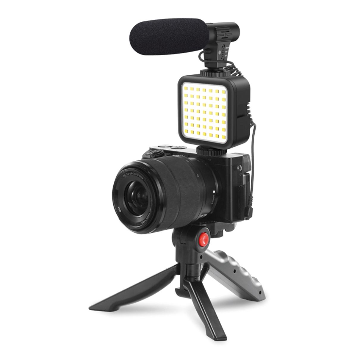 Sada pro vlogování je navržena tak, aby obohatila vaše videa o lepší zvuk a osvětlení uvnitř i venku. Je vybaven univerzálním mikrofonem pro práci s jakýmkoli chytrým telefonem nebo fotoaparátem, LED lampou s 36 super jasnými LED diodami, rukojetí pro přenášení, kterou lze použít jako stativ, a vestavěným držákem, který vám umožní připevnit nejen telefon, ale také lampu a mikrofon.