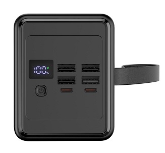 Je vybaven několika výstupními porty, včetně čtyř standardních portů USB-A, dvou portů Type-C, z nichž jeden slouží k nabíjení samotné powerbanky. Porty USB nabízejí výstup 5V/4,5A, 9V/2A a 12V/1,5A, zatímco port typu C nabízí výstup 5V/3A, 9V/2,22A a 12V/1,67A, což vám umožní rychle nabíjet různá zařízení.
