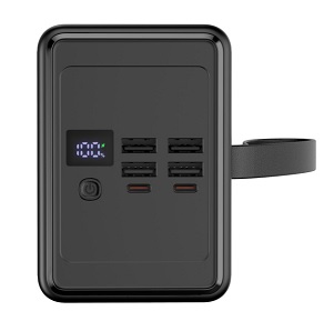 Je vybaven několika výstupními porty, včetně čtyř standardních portů USB-A, dvou portů Type-C, z nichž jeden slouží k nabíjení samotné powerbanky. Porty USB nabízejí výstup 5V/4,5A, 9V/2A a 12V/1,5A, zatímco port typu C nabízí výstup 5V/3A, 9V/2,22A a 12V/1,67A, což vám umožní rychle nabíjet různá zařízení.